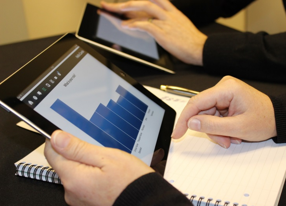 Our system uses 'push technology' to change the iPad screens and display a variety of polling questions and feedback. This improves participation rates and helps focus the audience on the current topic. Graphs, Wordclouds and Text walls help visualise the data for on stage analysis