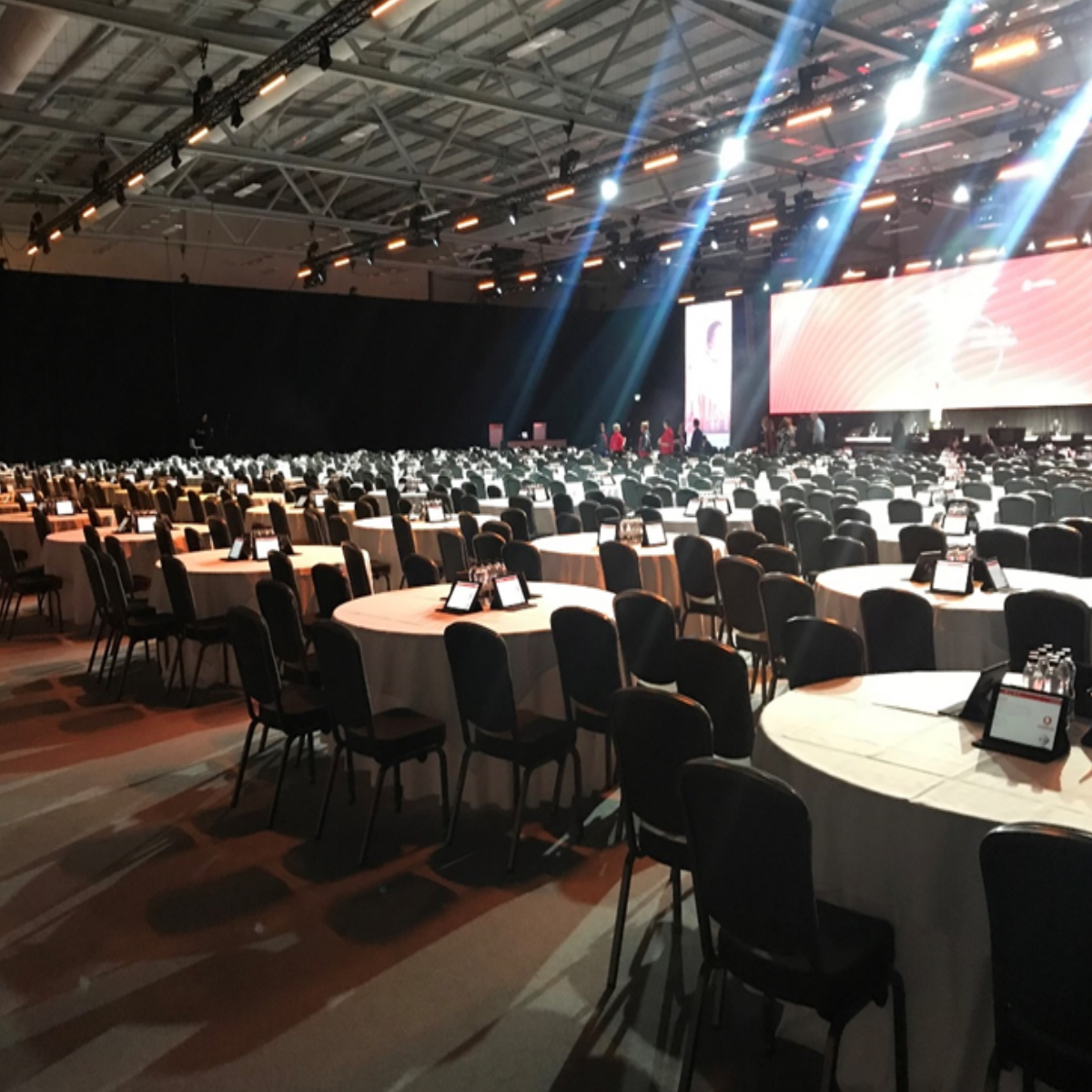 We provided 500 iPads and 20 spare units, the iPads were preloaded with our own customised event App. In addition the iPads were locked down using guided access, so that attendees could not browse the open web. All iPads were configured in our workshops to connect to a dedicated WiFi network as soon as they were powered on, no configuration on site was required.